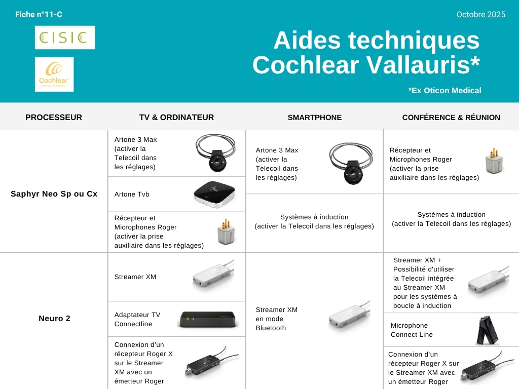Aujourd'hui, tous les fabricants proposent des aides techniques pour chaque modèle d'implant afin de vous aider pour mieux entendre lorsque vous téléphonez, regardez la télévision ou un ordinateur, ou assistez à une réunion ou à une conférence.
